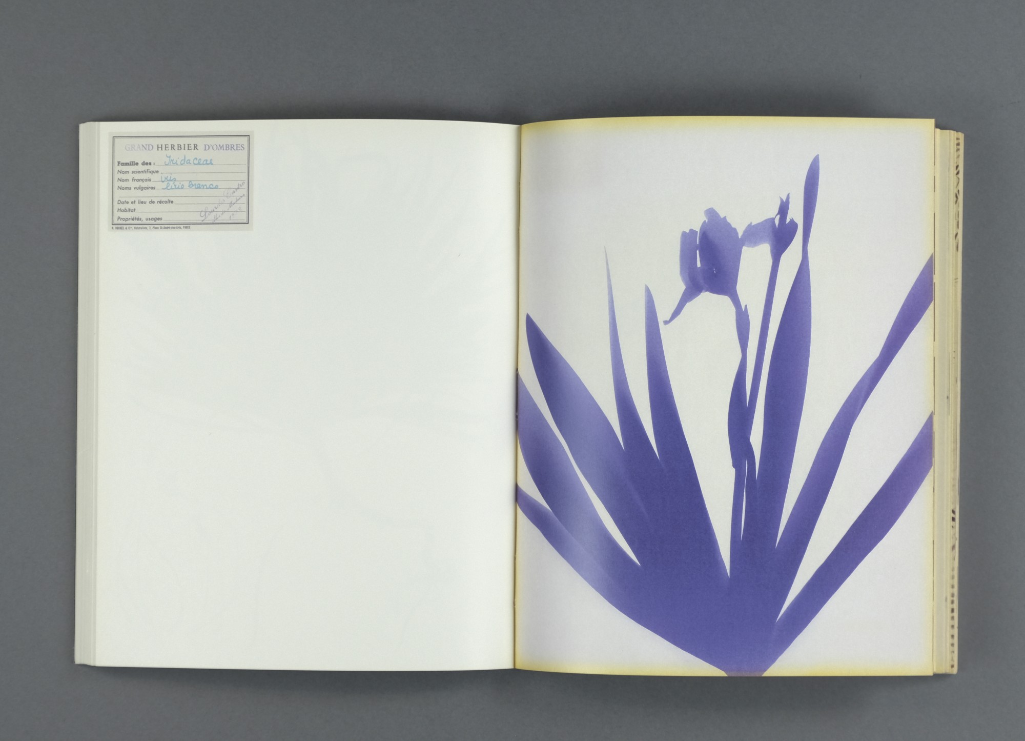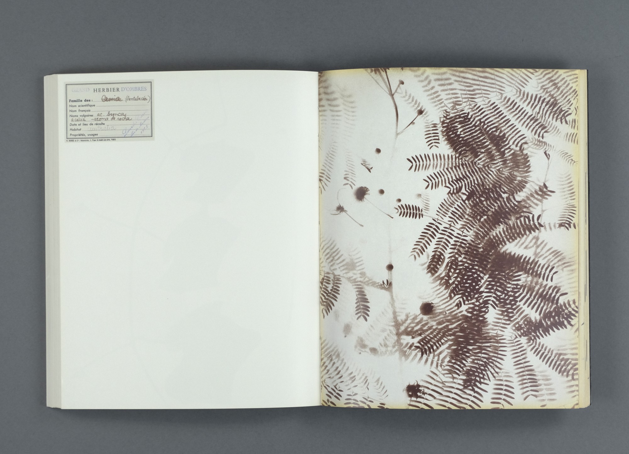 Grand Herbier d'Ombres takes on the function of an inventory of botanical species, which, recorded by phototype – with heliographic paper under sunlight –, suggest an effect of dematerialization of reality, an essential concept in the work of Lourdes Castro.