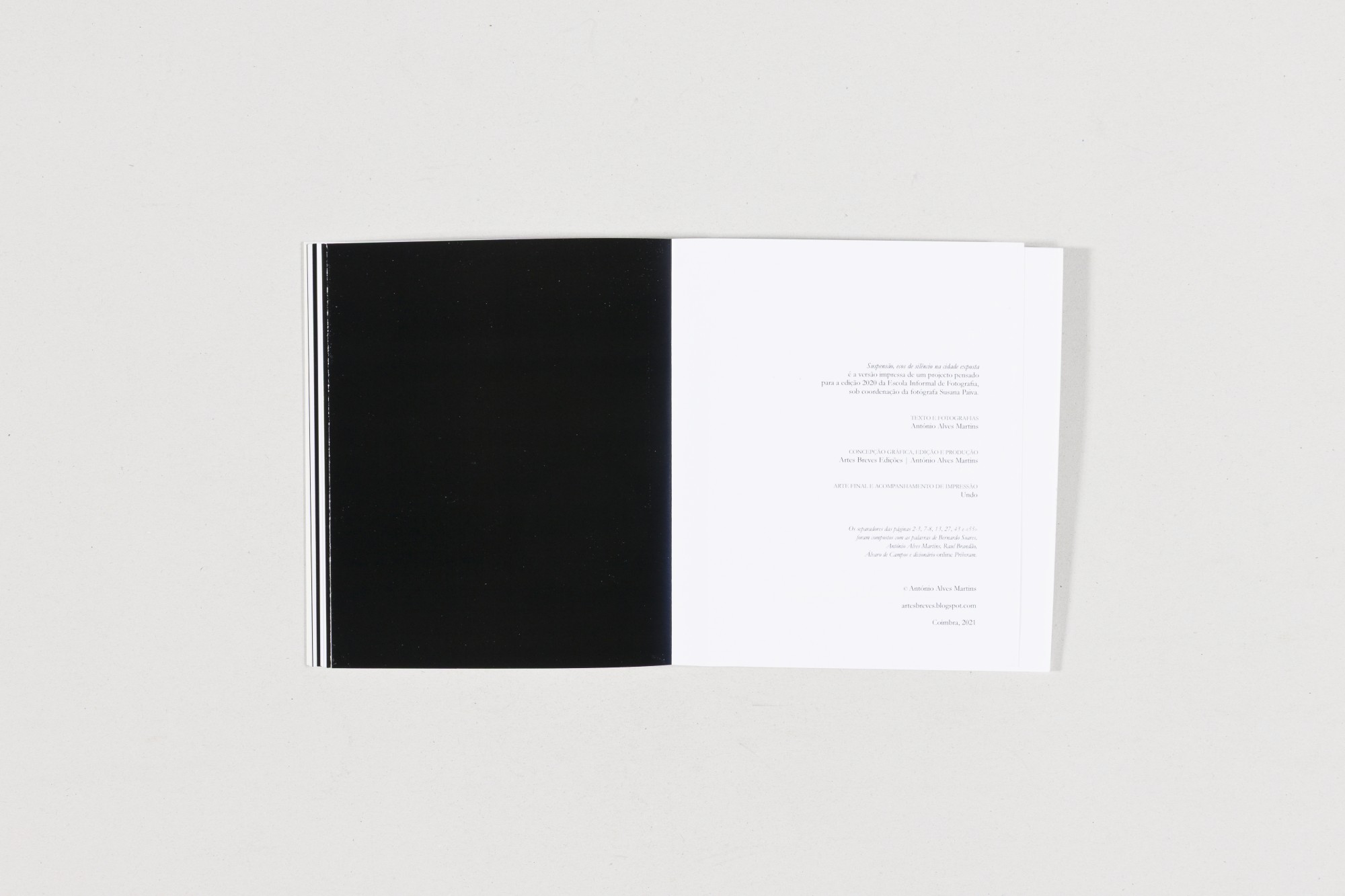 Notas de conteúdo: 56 páginas, com 23 fotografias a preto-e-branco (sendo cinco em página dupla), a que se junta um extratexto-imagem com 29,8 x 17,5 cm (aberto). | Encarte (no final): uma folha com texto impresso em papel Nautilus reciclado branco 90 g, 14,5 x 17 cm (dobrada). | Capa impressa em Chromo 330 g, com plastificação mate. | Miolo em cadernos de oito páginas, cosido e impresso em papel Munken Pure 120 g [pp. 1-8] e Chromo mate 150 g [pp. 9-56] + extratexto.